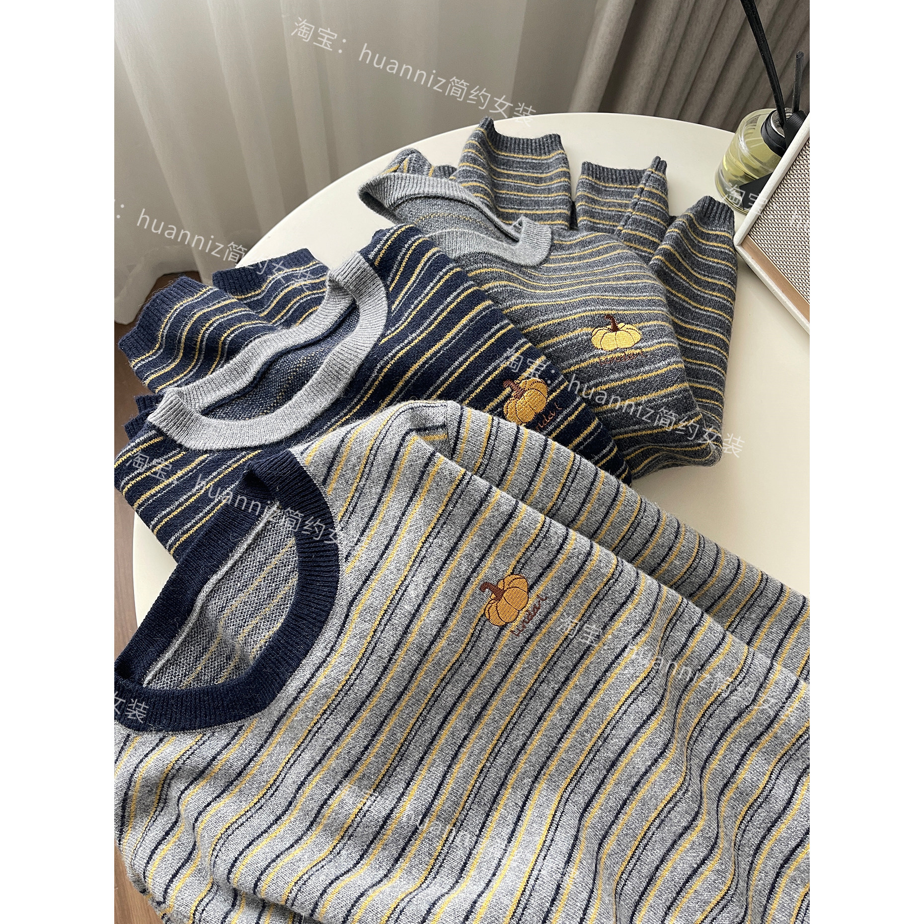 mlmr条纹针织衫秋冬季新款时尚圆领复古撞色刺绣毛衣针织衫男女