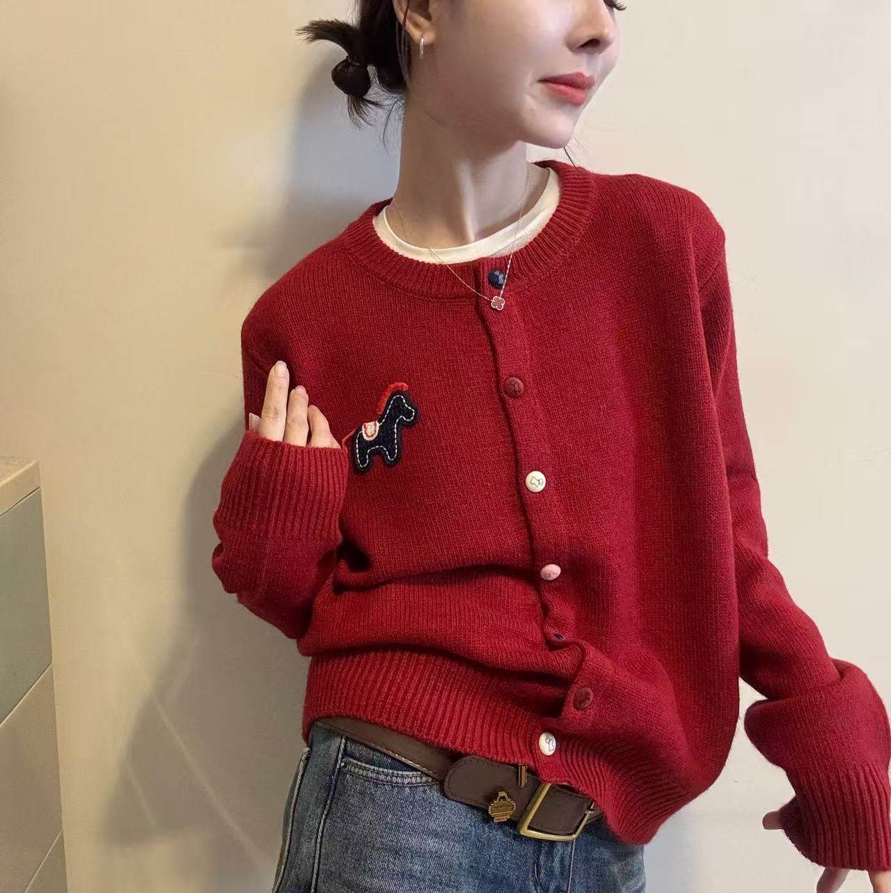 十三行圣诞款小马刺绣毛衣女2025新款马上有钱内搭跨年针织衫上衣