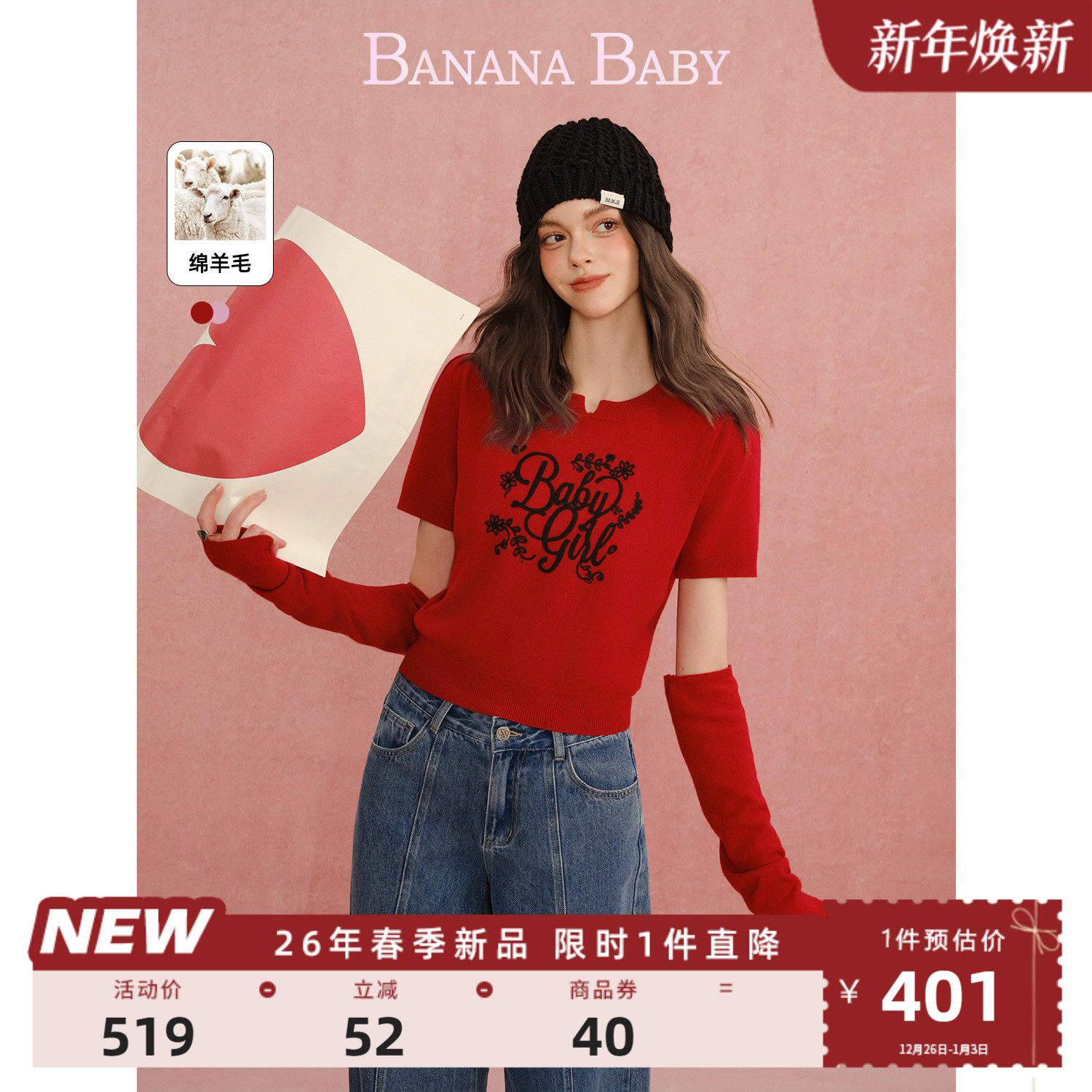 【100%绵羊毛】BANANA BABY2026年春新款甜美刺绣毛衣女可拆卸袖