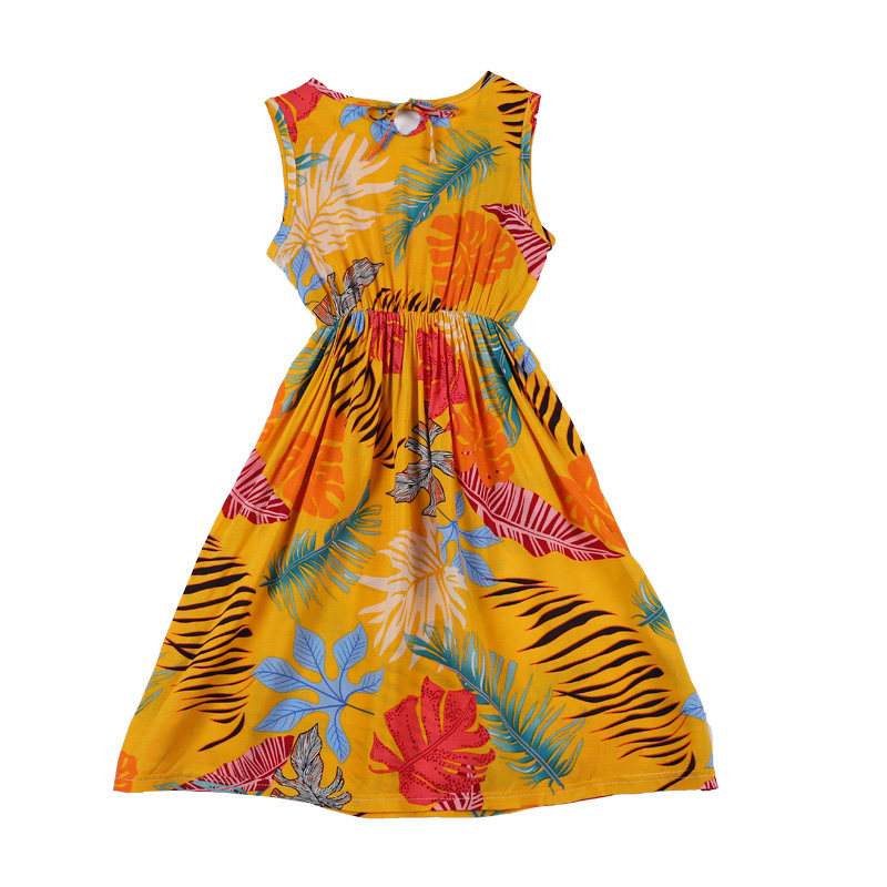 女童棉绸连衣裙夏季薄款小女孩无袖吊带背心裙子中大童亲子沙滩裙