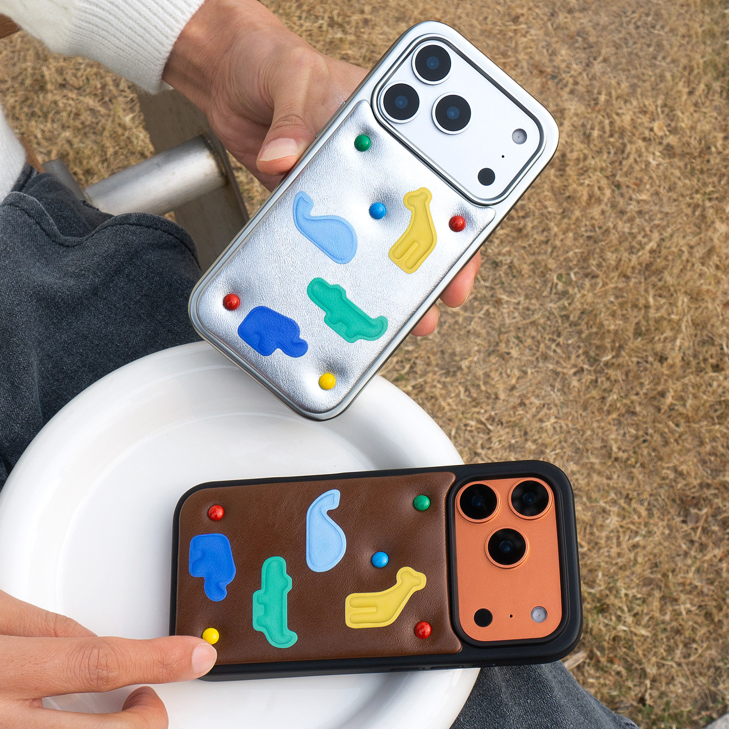 DT play 时髦皮质金属铆钉色彩入侵韩国ins博主小众设计适用于iphone17promax/16/15苹果14/13手机壳保护套