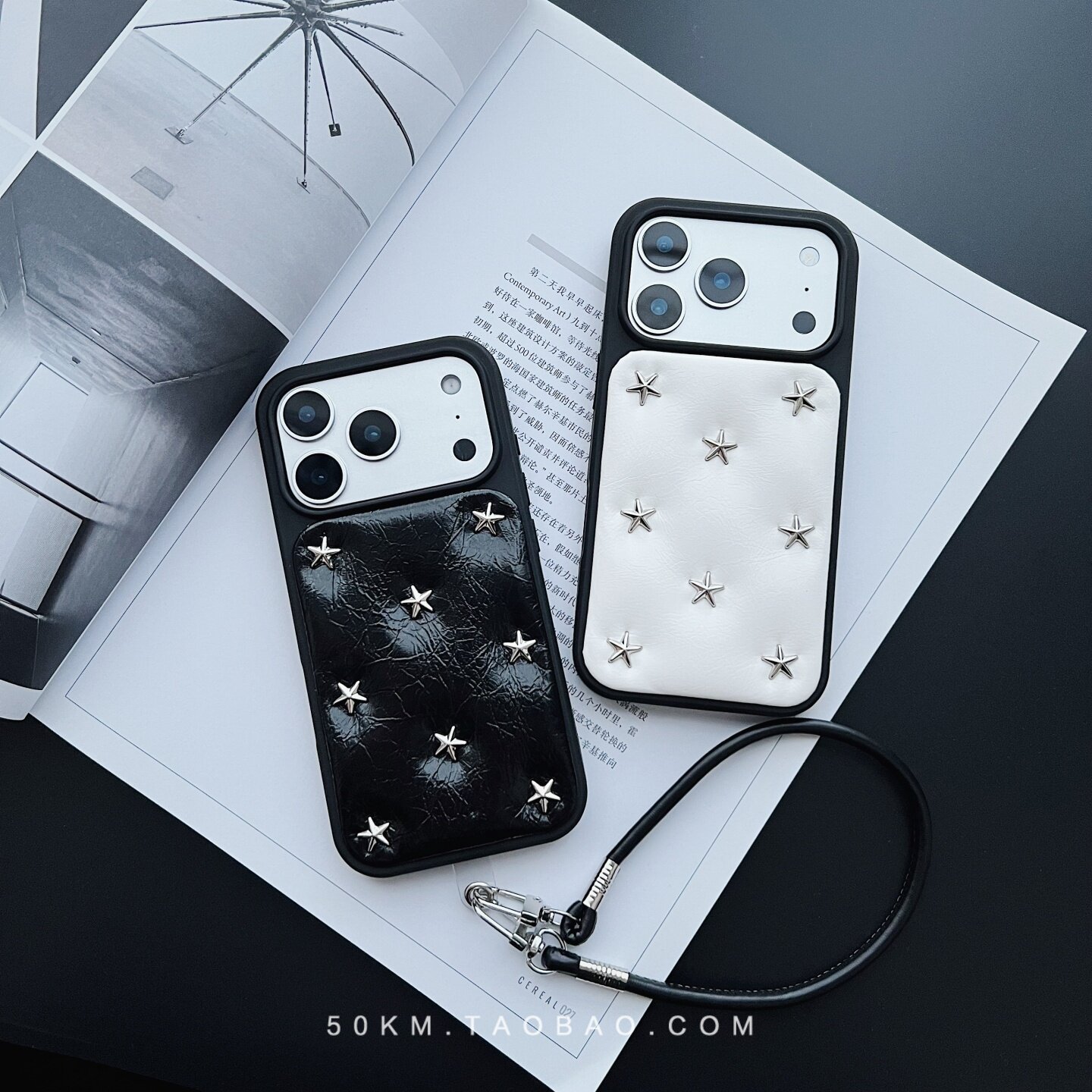 KASO限量版铆钉星星适用苹果iPhone15ProMax高档防摔11手机壳皮革12保护套14潮牌日韩高级感小众新款13个性