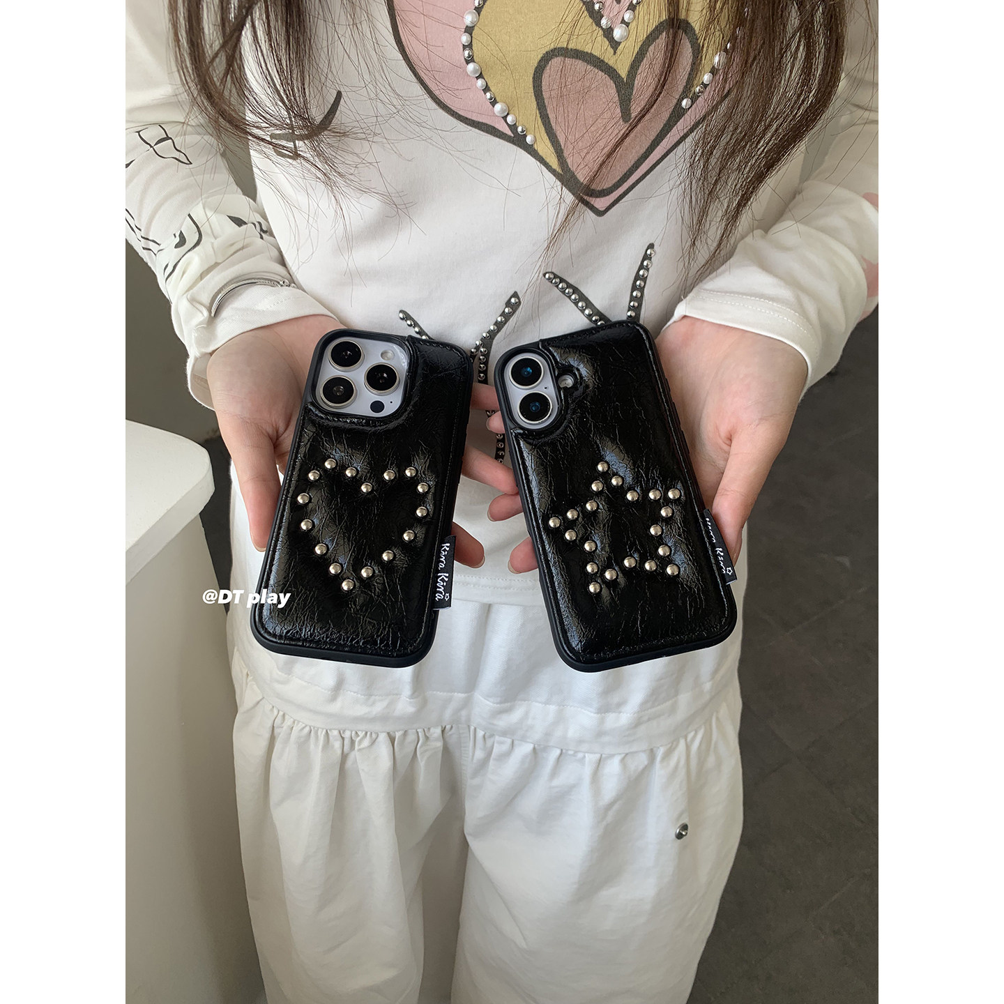 DT play 甜酷爱心铆钉少女氛围感韩国ins博主小众适用于iphone17/16promax/15苹果11/12/14/13手机壳保护套