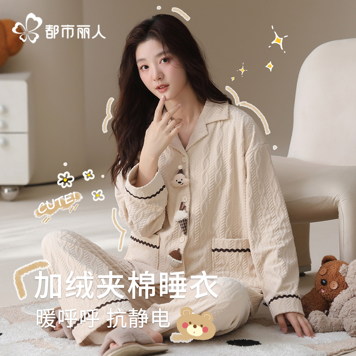 都市丽人珊瑚绒睡衣女士冬加绒加厚2025新款甜美可爱法兰绒家居服