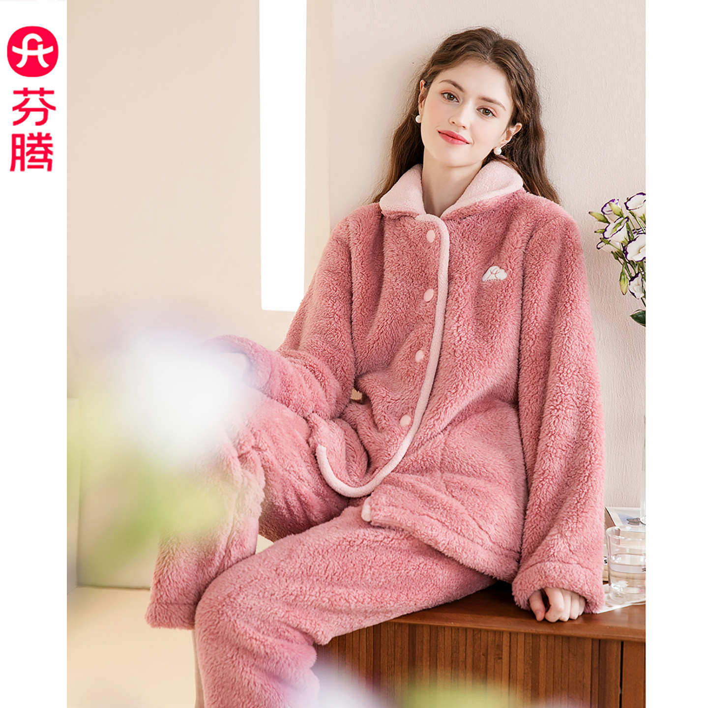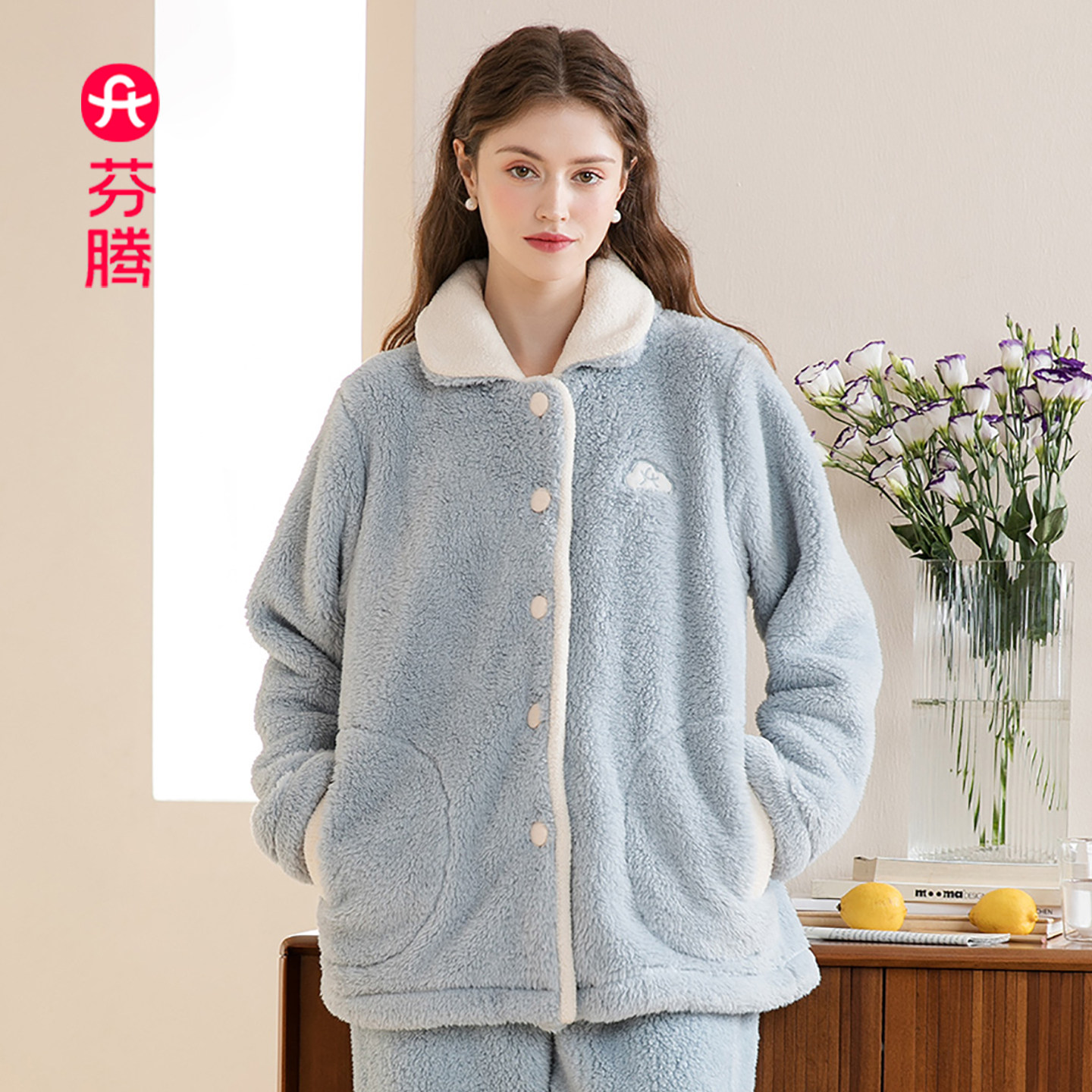 芬腾秋冬款女士睡衣珊瑚绒法兰绒加绒可爱甜美温婉风居家睡衣套装