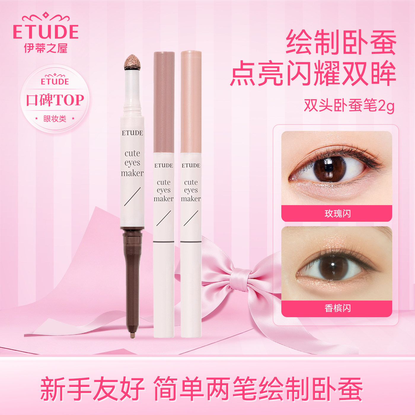 【纯欲鼻祖】韩国etude house爱丽小屋双头卧蚕笔眼影笔自然提亮