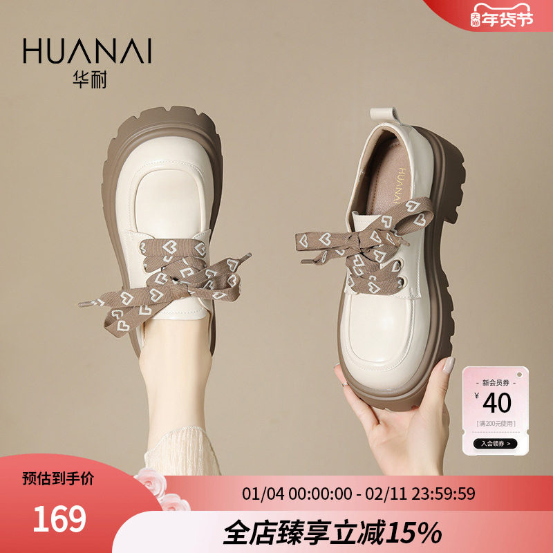 华耐厚底乐福鞋女2025新款学院日系jk鞋增高英伦风小皮鞋通勤单鞋