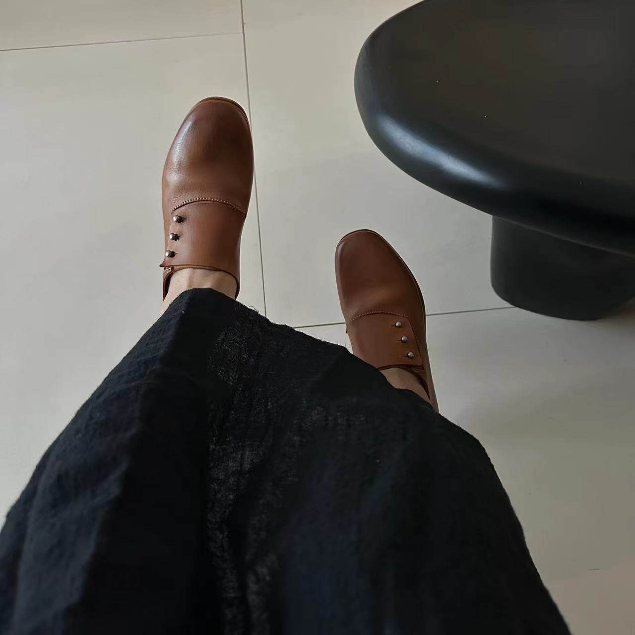 - 复古 真皮 鞋