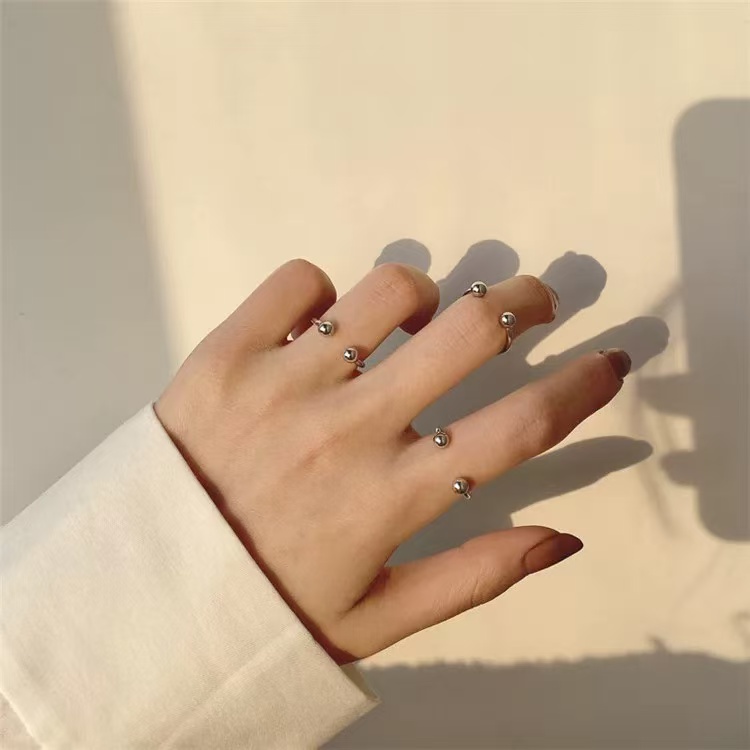韩系ins小众设计轻奢高级感银色圆珠关节戒指个性简约开口指环