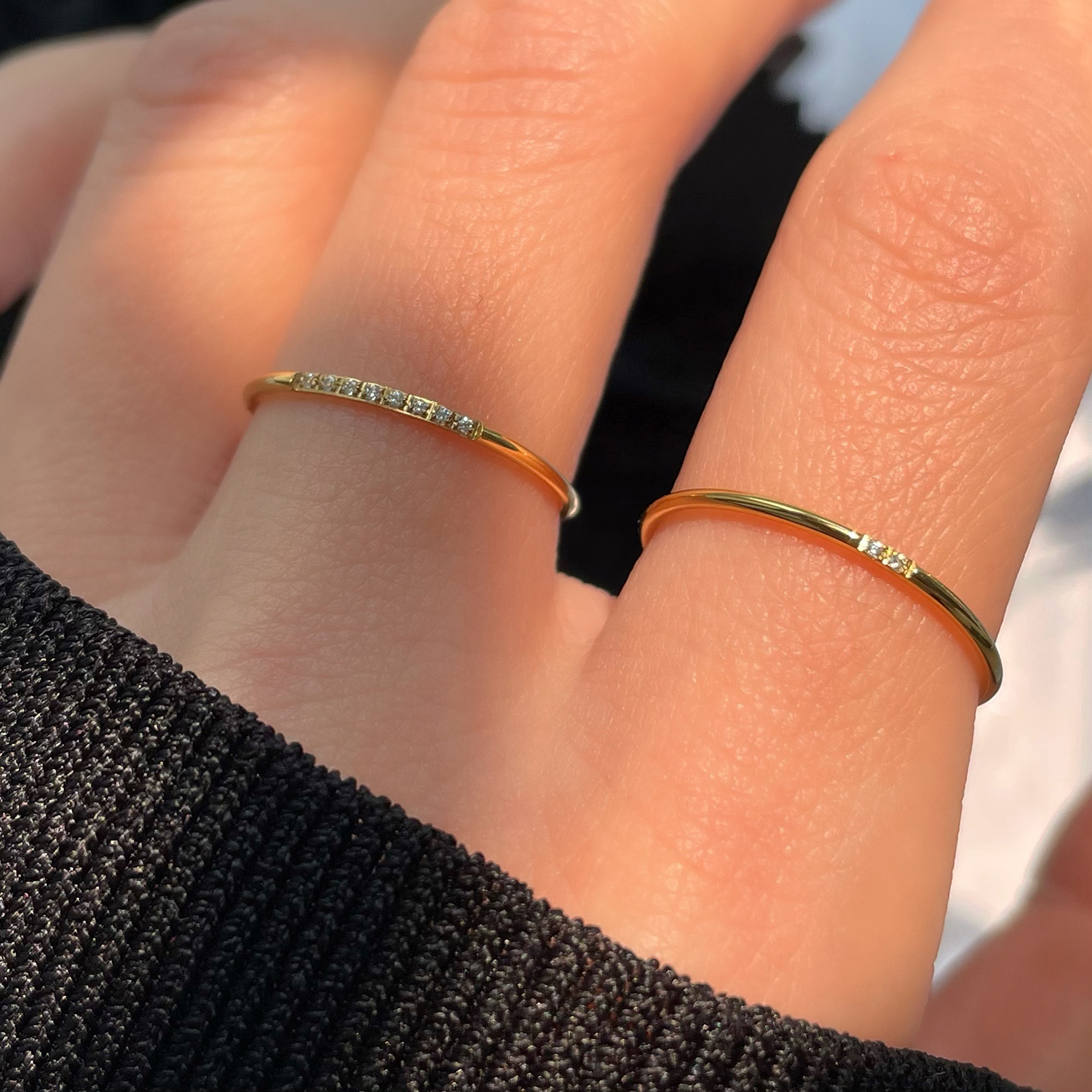 OPs洗手不必摘美国14K包金气质小钻简约细光面关节戒指环女叠戴