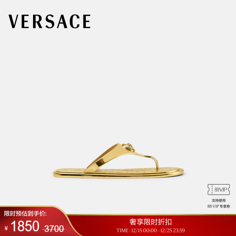 【季末优惠】VERSACE/范思哲 女士Alia金属质感平底凉鞋