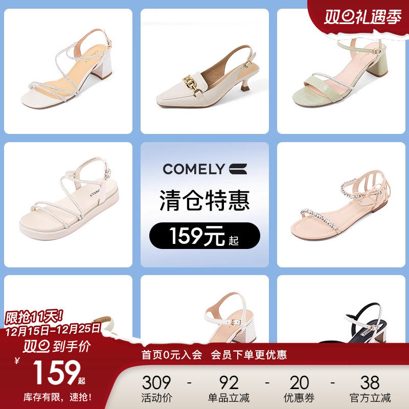 康莉comely平底凉鞋女一字带低跟凉鞋中后空鞋 159元起不定时更新