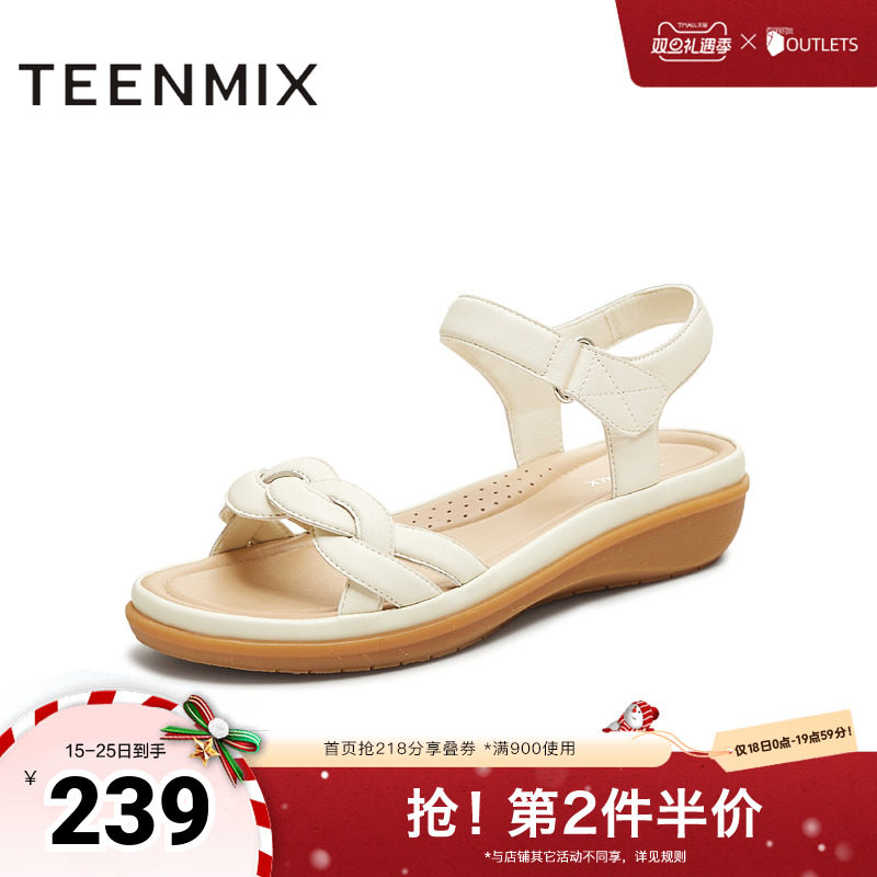 天美意2025夏新款平底凉鞋通勤百搭沙滩鞋女一字带凉鞋KI013BL5