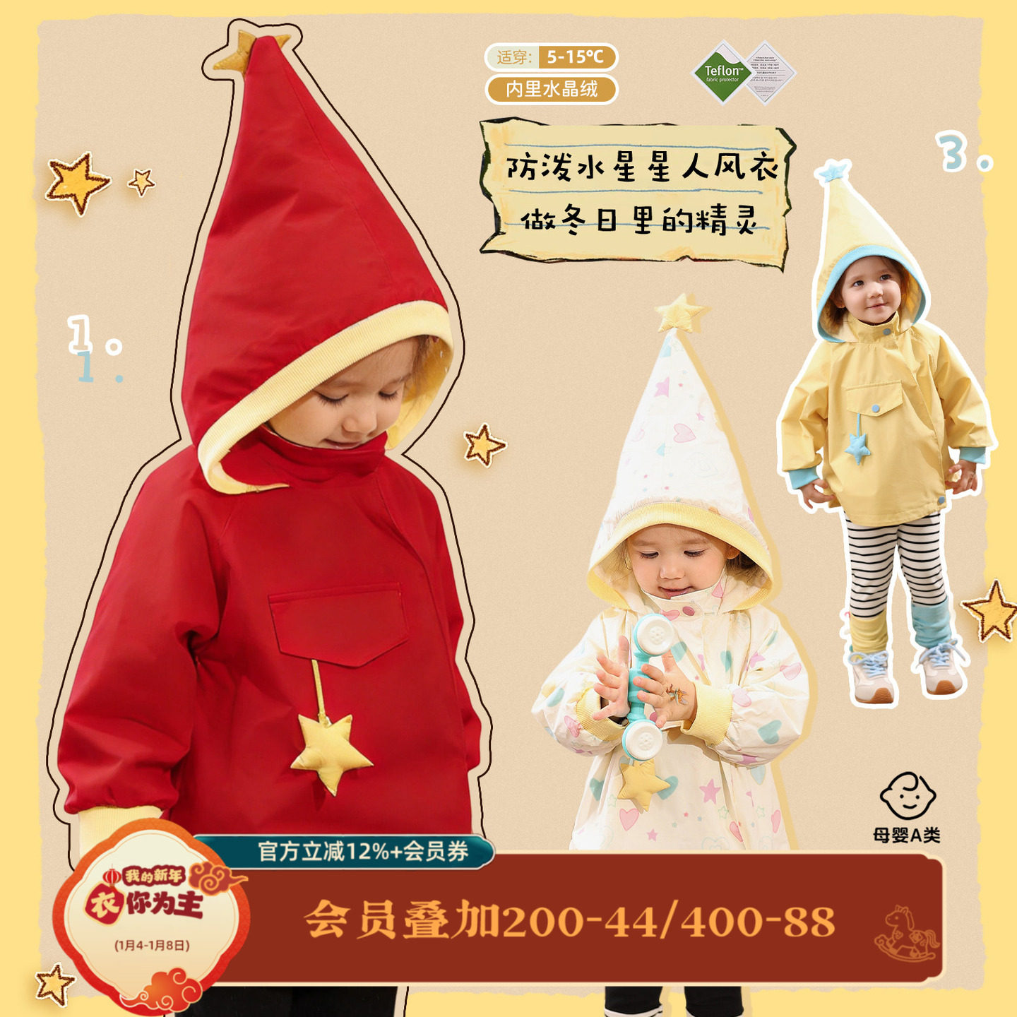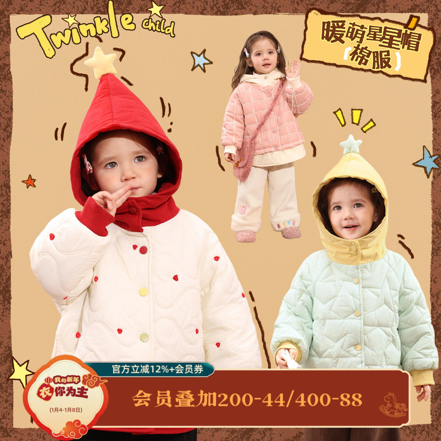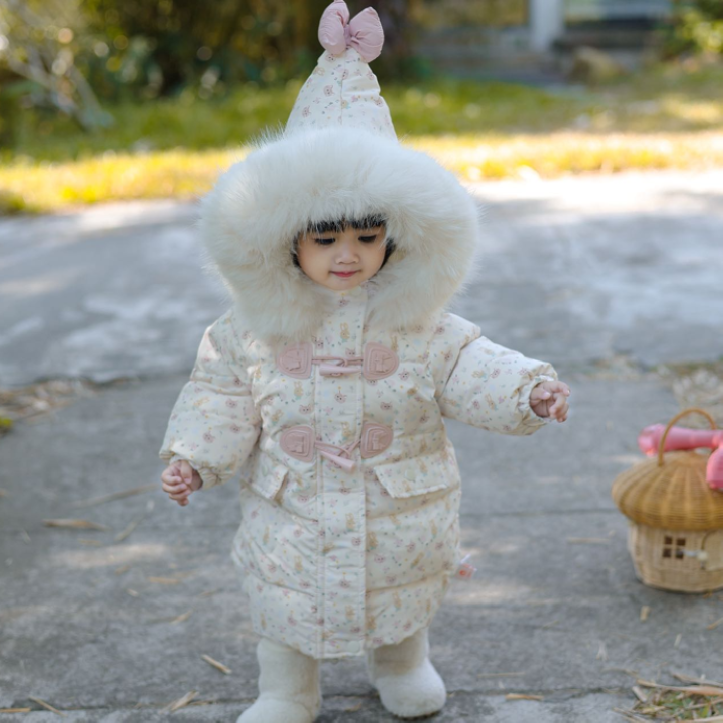 小o爸女婴童 女宝宝外套棉服2025冬季新款婴儿精灵帽洋气保暖棉衣