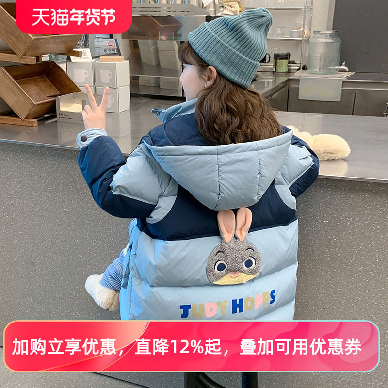女童羽绒服冬季白鸭绒中长款2025新款贴标儿童女宝宝外套冬装加厚
