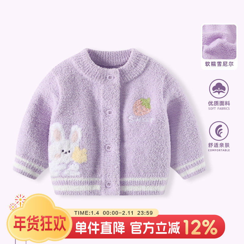 婴儿毛衣秋冬女宝宝外套雪尼尔加厚半边绒针织衫女童冬装幼儿衣服