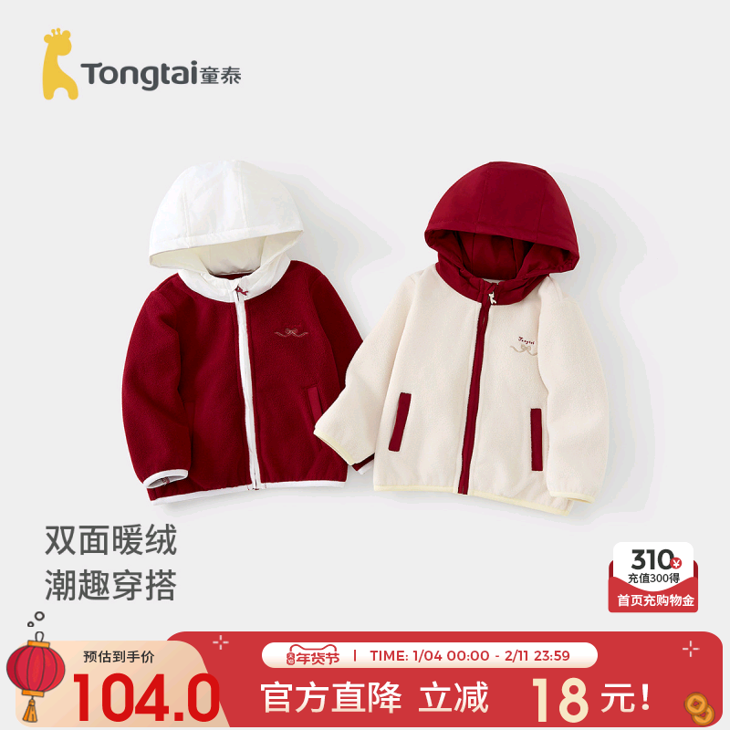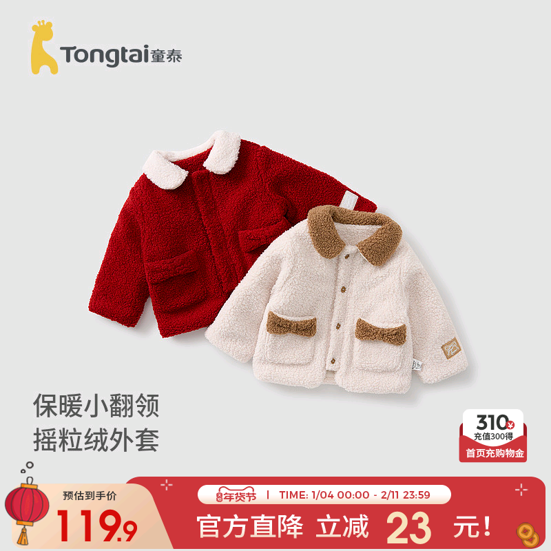 童泰女宝宝外套冬季夹棉儿童衣服女童休闲外出加厚羊羔绒翻领上衣