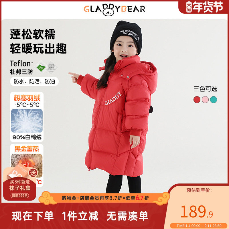 鸭鸭儿童羽绒服女童中长款小童2025新款加厚连帽冬季女宝宝外套