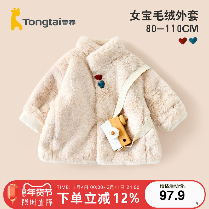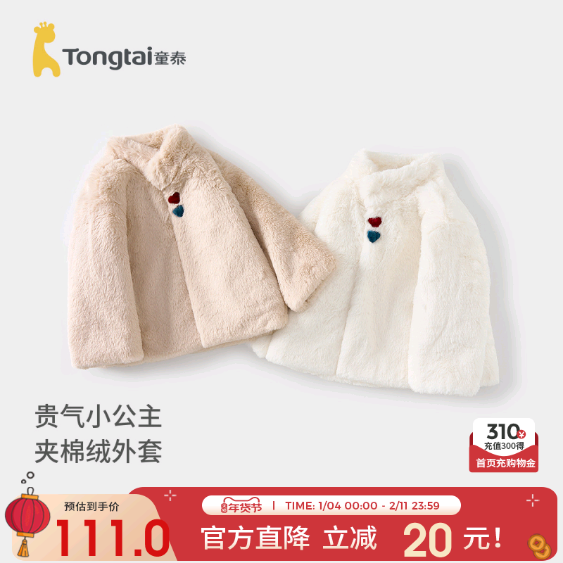 童泰新款女宝宝外套冬季夹棉女童立领外出上衣可爱毛绒绒衣服公主