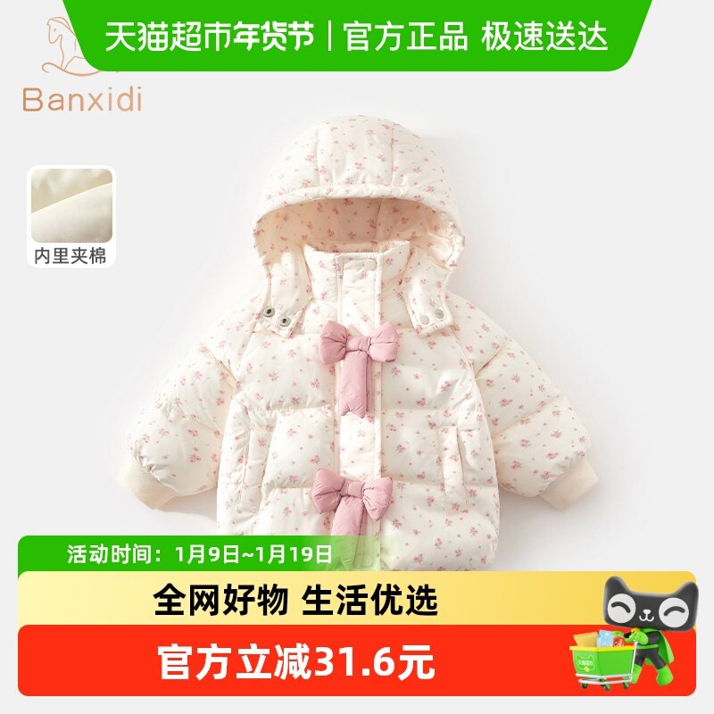 班喜迪女童棉服冬装女宝宝外套保暖夹棉上衣冬季儿童连帽棉衣棉袄