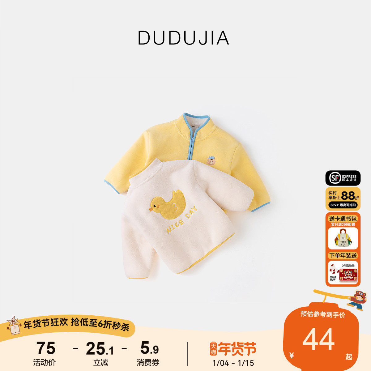 嘟嘟家童装女宝宝外套加绒保暖冬季儿童上衣男童衣服冬装内穿打底