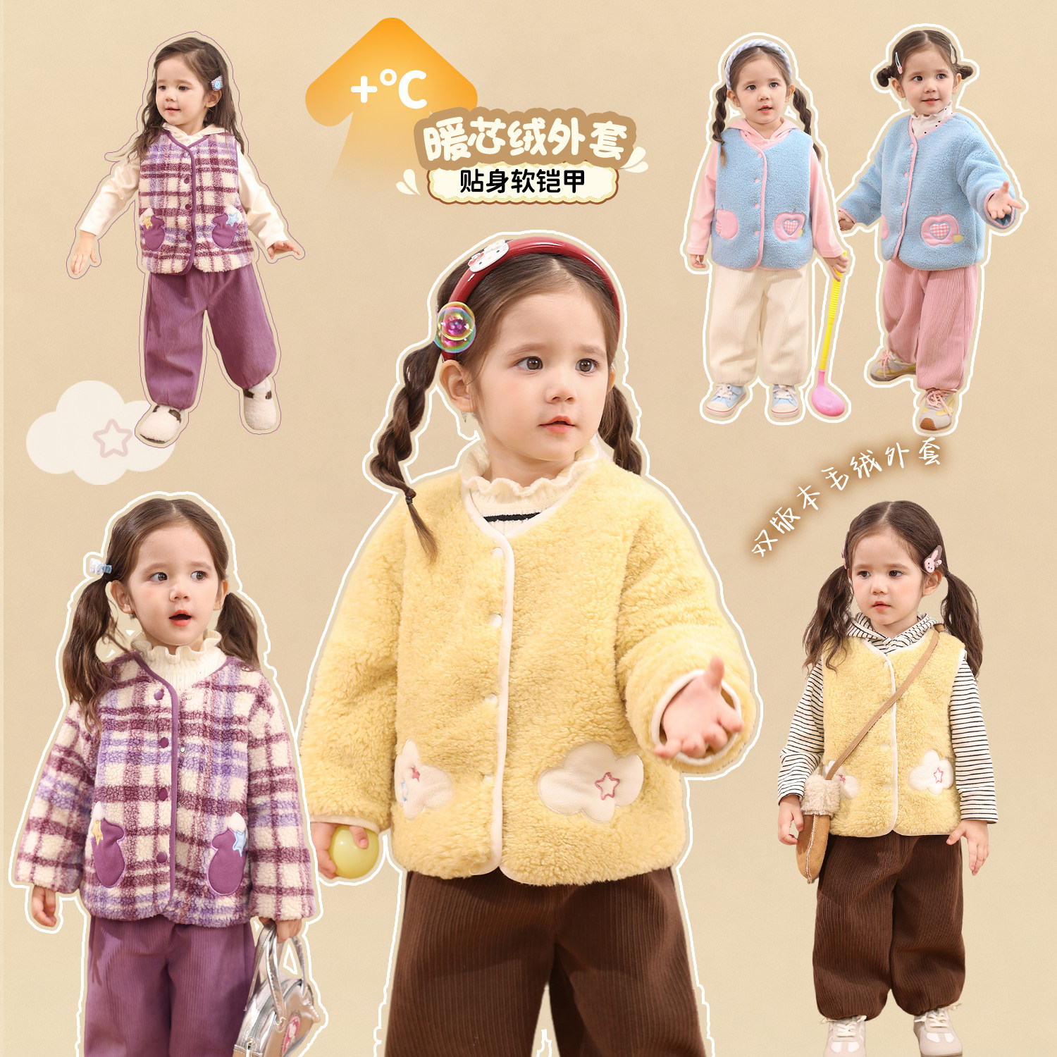 小o爸女婴童 女宝宝外套毛绒2025冬季新款婴儿加绒保暖洋气上衣