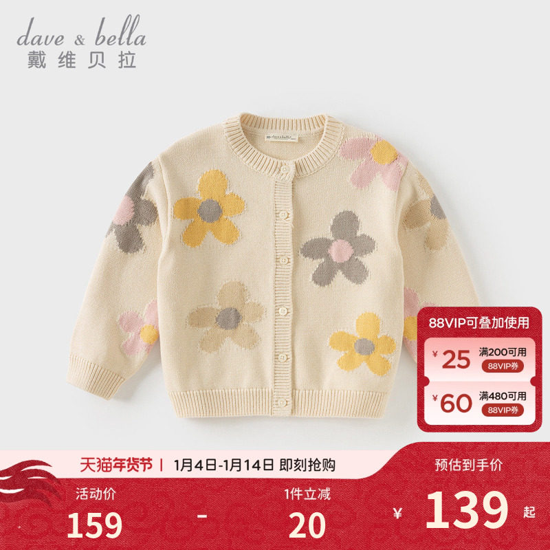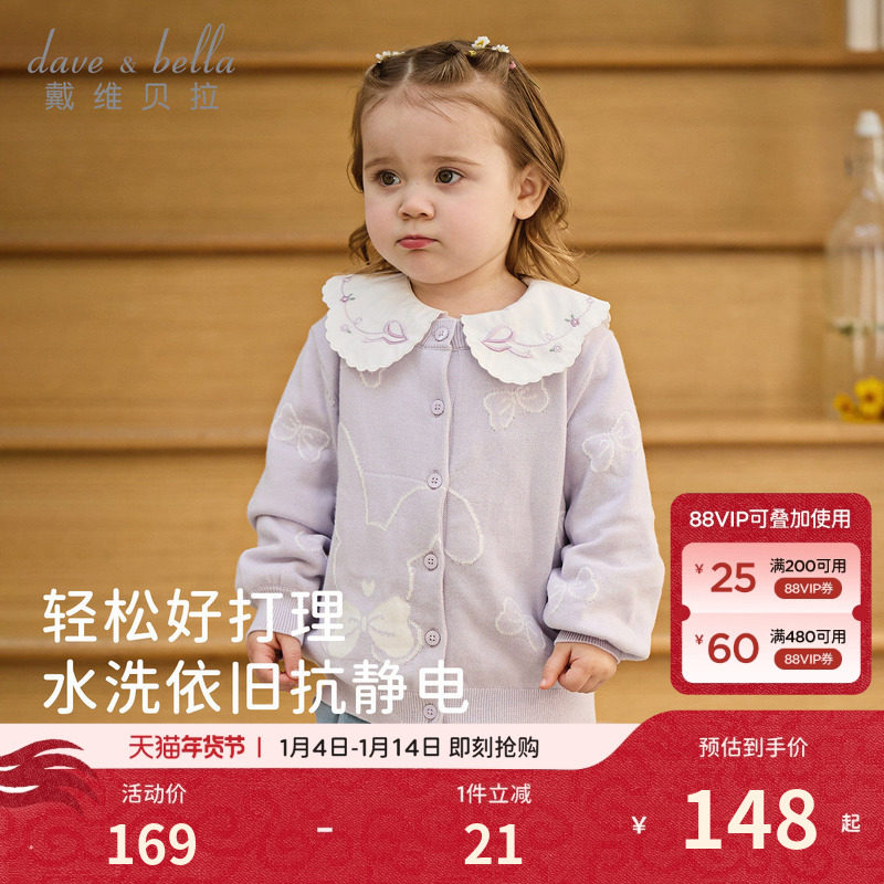 戴维贝拉女童针织衫儿童毛衣开衫女宝宝外套童装上衣2026秋季新款