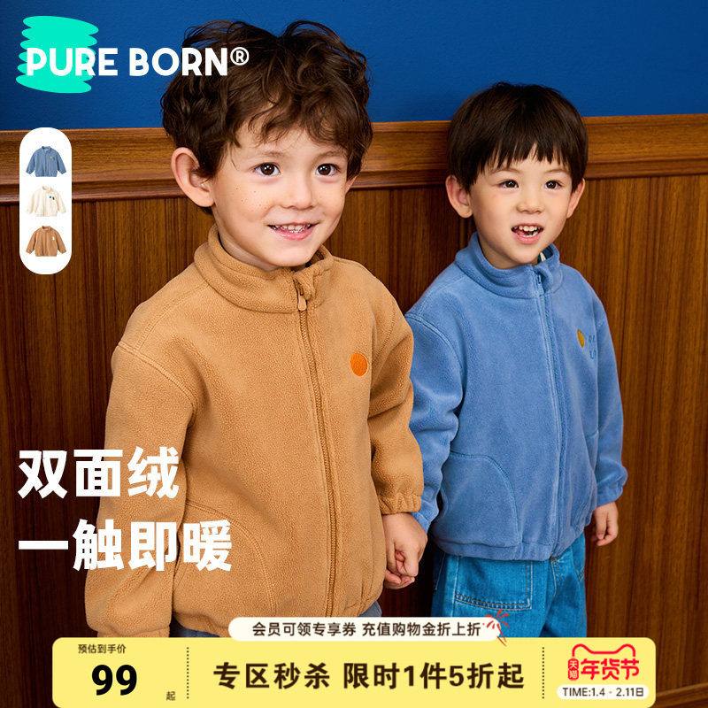 [抗静电双面绒]博睿恩男童女宝宝外套秋冬款加绒休闲拉链上衣童装