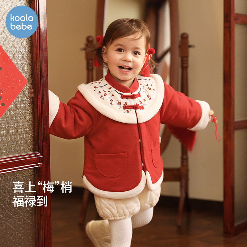 考拉鼻鼻【折扣款】女宝宝外套婴儿周岁礼服喜庆夹棉棉服福禄满满