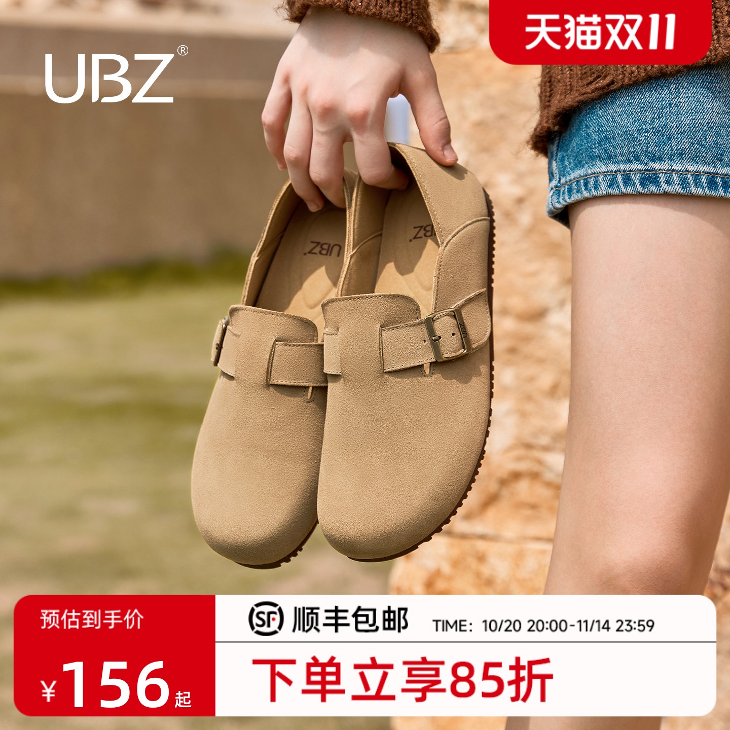 UBZ 防水厚底勃肯鞋女2025新款春秋包头半拖男款博肯增高真皮单鞋