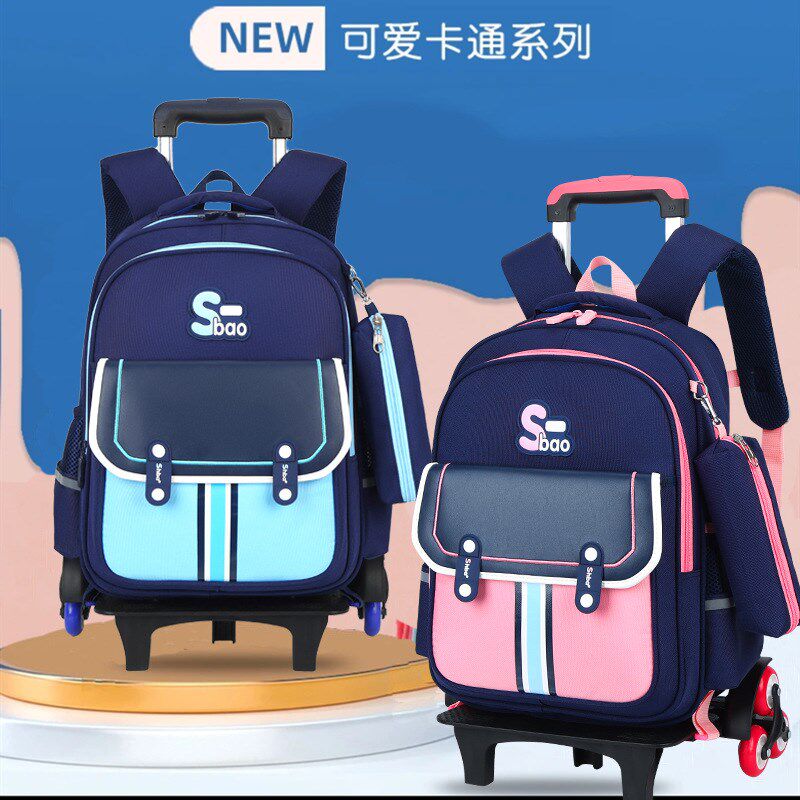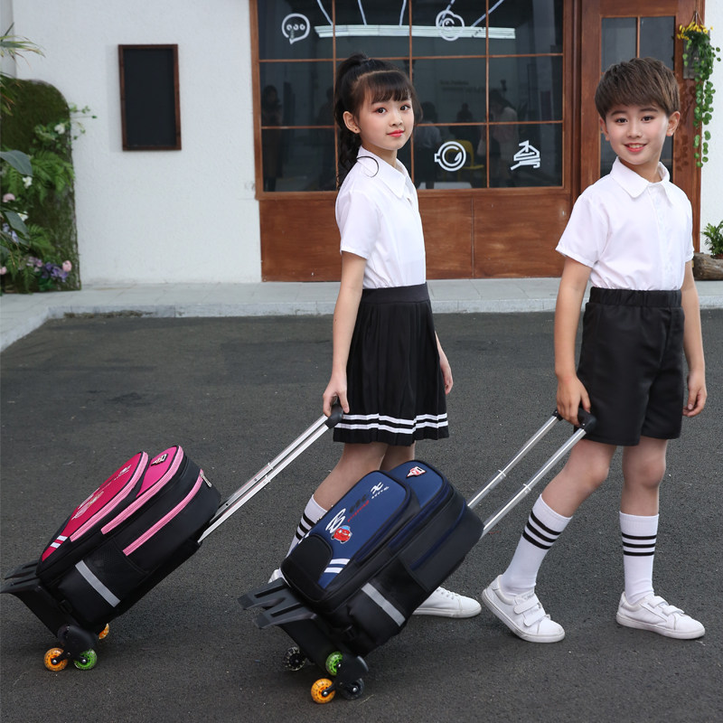 新款儿童拉杆书包小学生p男孩6-12周岁女童1-3-5-6年级防水爬楼拖