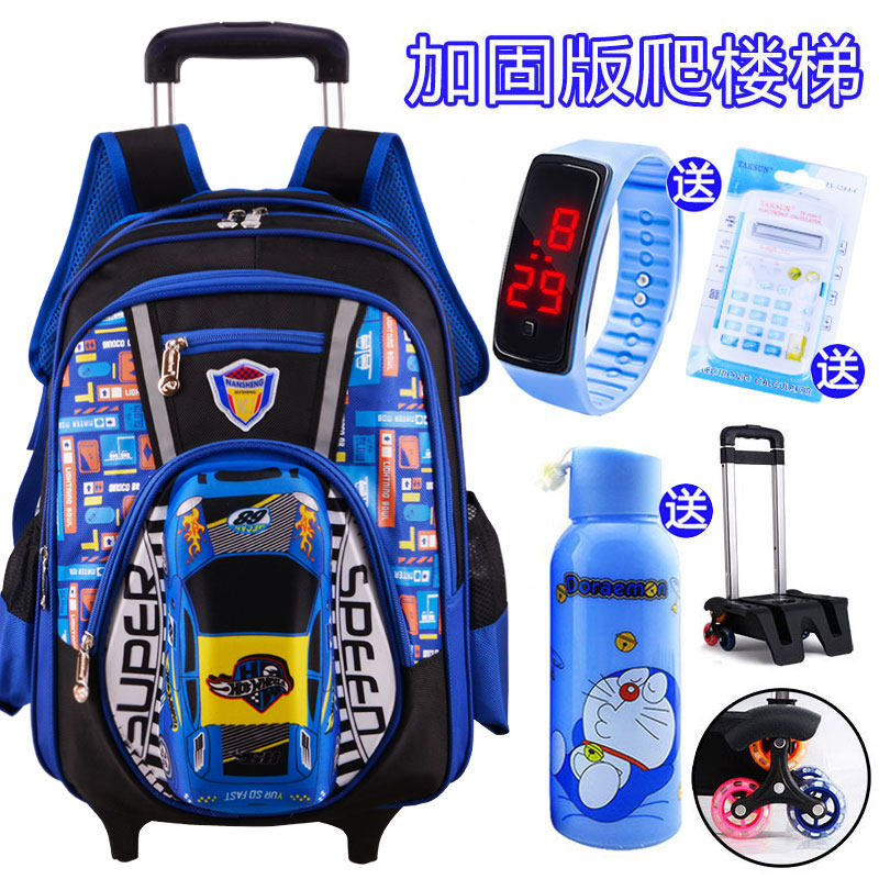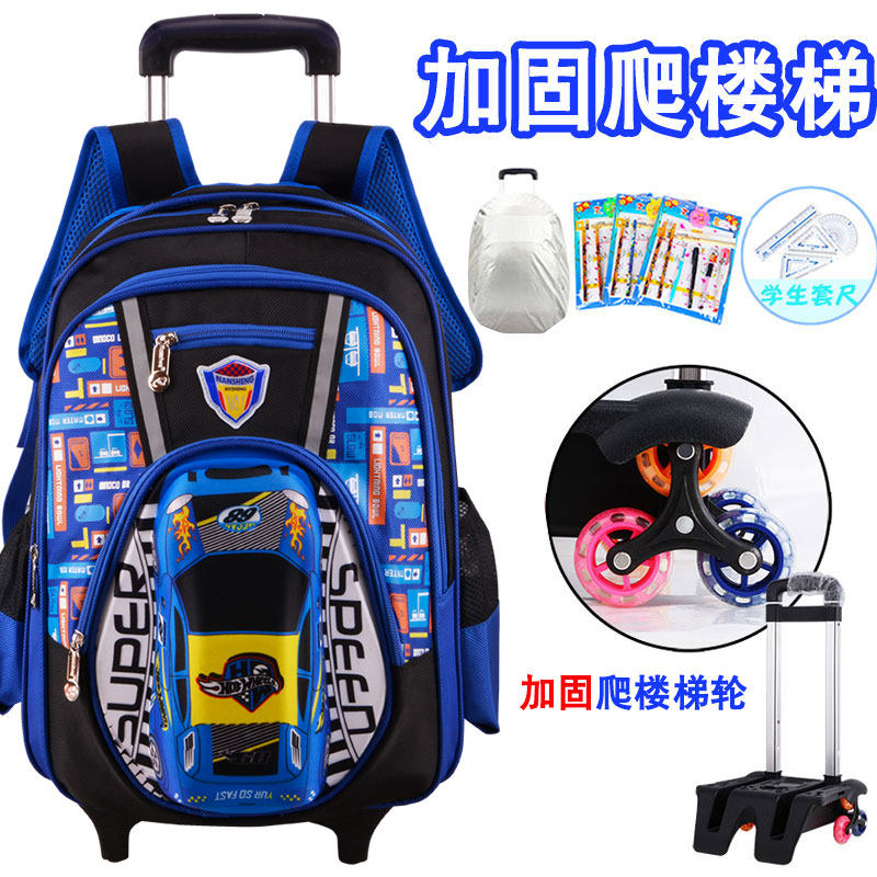 儿童拉杆书包小学生男孩3-9v年级防水6-12周岁可爬楼梯推拖拉六轮