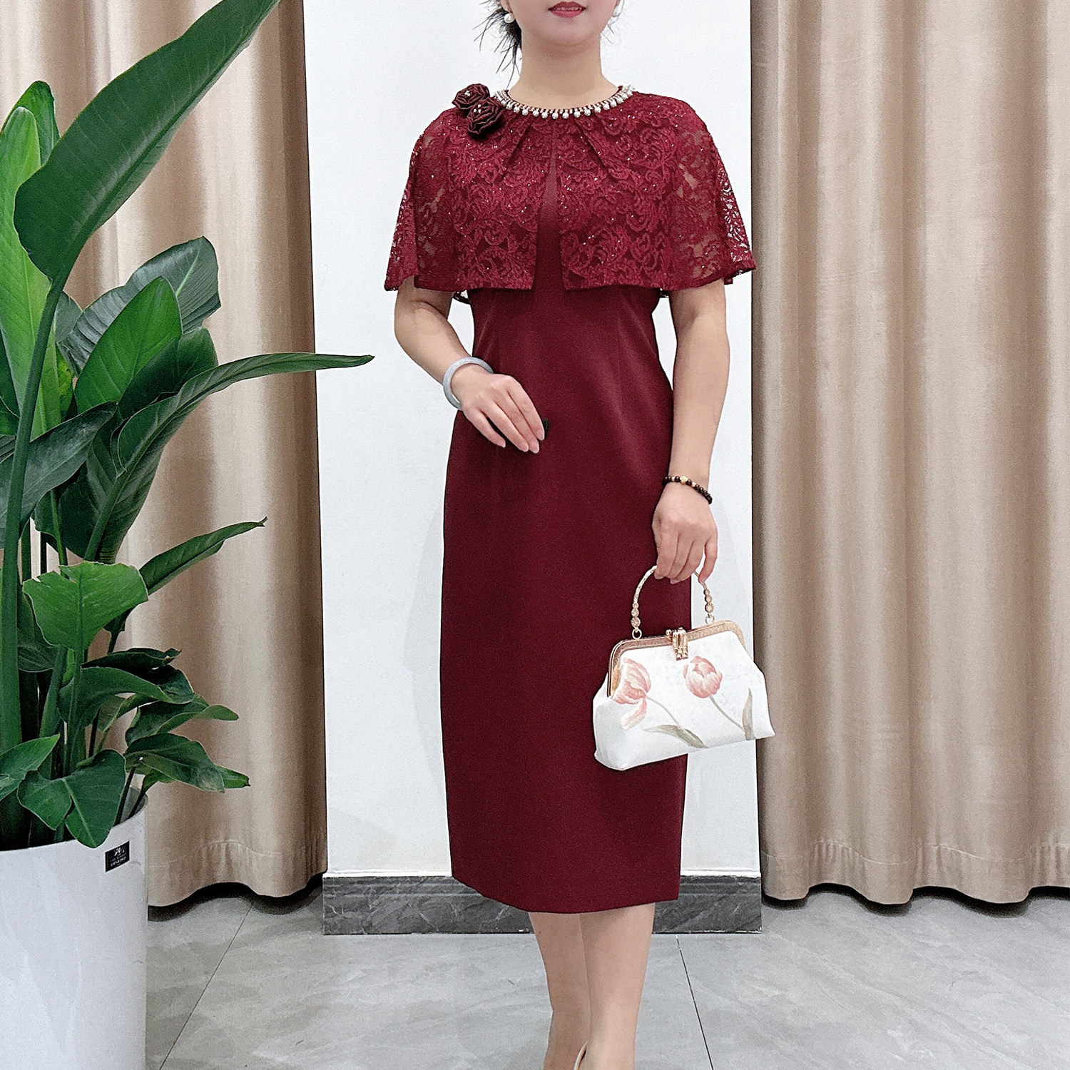 酒红色结婚新娘披肩女坎肩围巾婚礼晚礼服外套旗袍外搭斗蓬88013