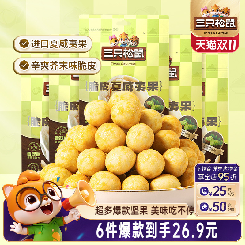新品【三只松鼠_芥末味夏威夷果仁25g】坚果零食特产大颗粒脆皮