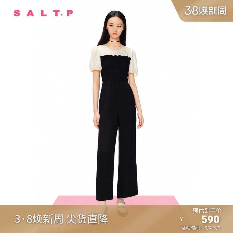 【醋酸】SALT.P可颜圆领泡泡袖黑白撞色拼接收腰阔腿连体裤夏