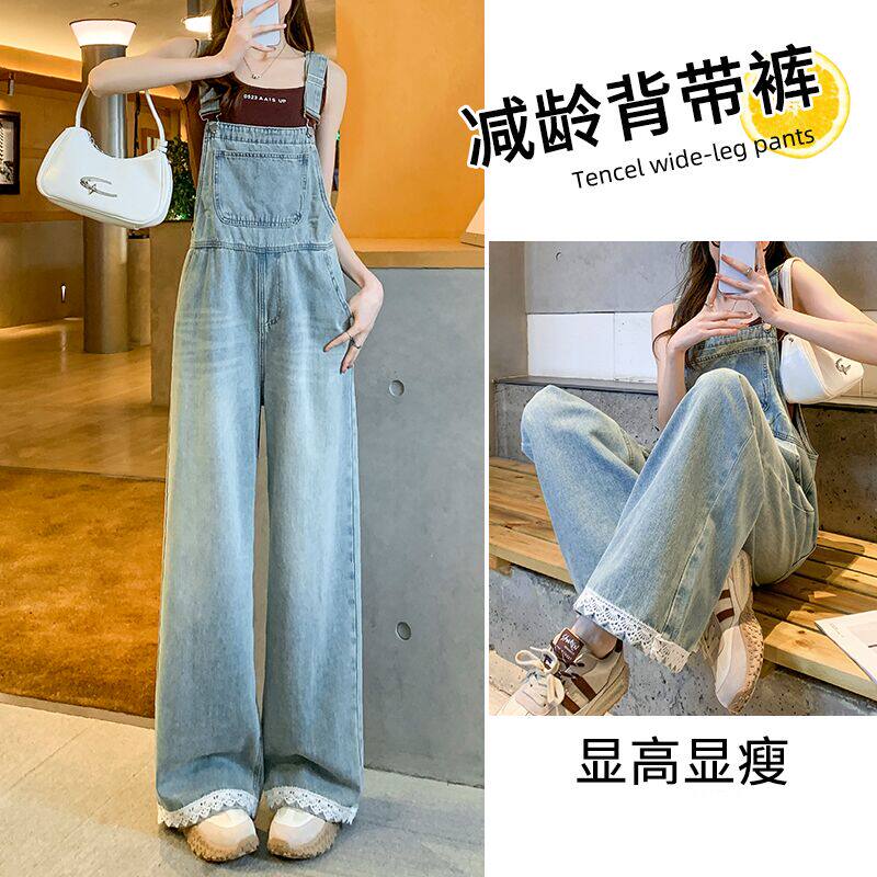 减龄牛仔背带裤女蕾丝拼接2025年夏季新款宽松休闲显瘦阔腿连体裤