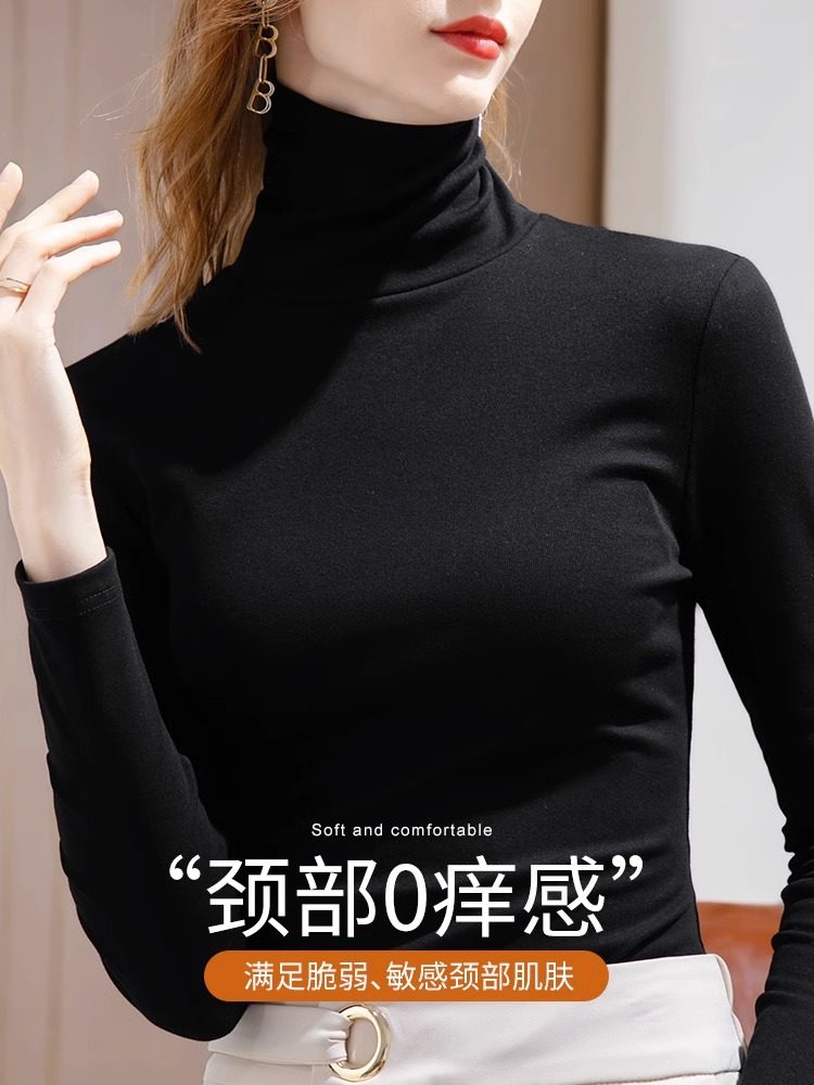 黑色高领打底衫女秋季新款莫代尔柔软风衣内搭加绒堆堆领保暖上衣