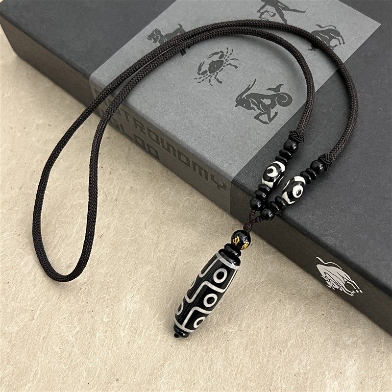 新中式国潮陶瓷天珠项链r男潮黑白撞色小众设计高级感百搭个性配