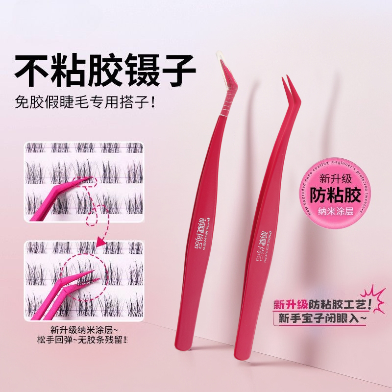 妮丽雅假睫毛镊子防粘新手专用高精密下睫毛免胶嫁接工具平头夹子