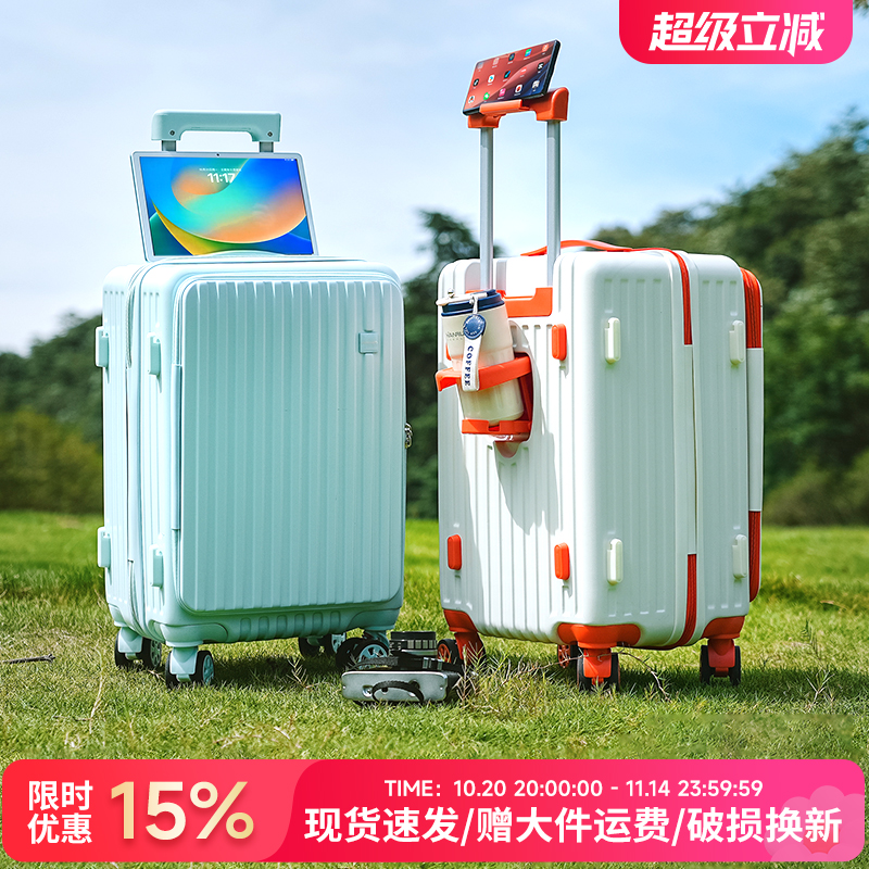 20寸行李箱女多功能登机箱前侧开盖密码皮箱拉杆箱男旅行箱24新款