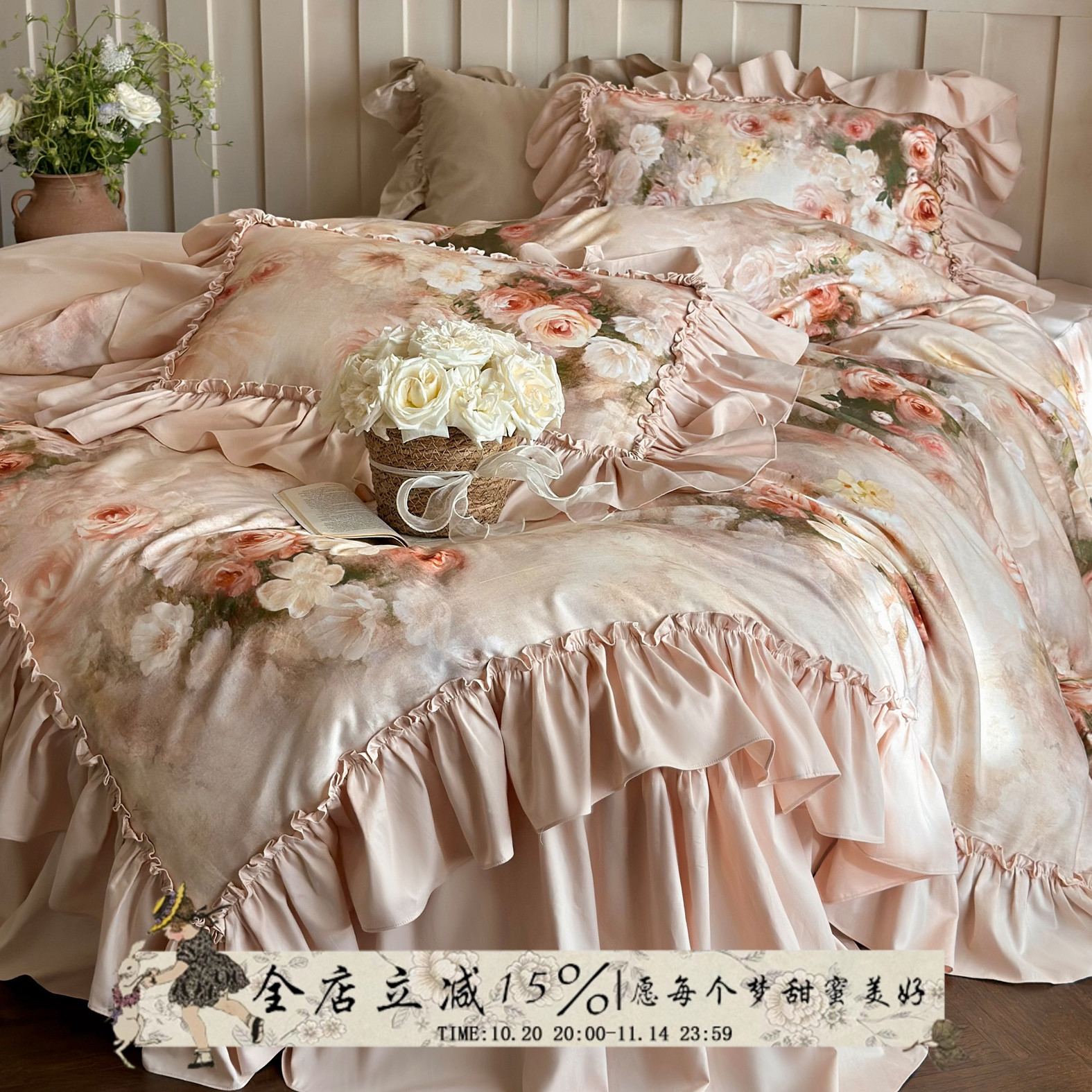 香茶花梦︱法式复古秋冬全棉磨毛床裙四件套纯棉浪漫莫奈花园床品