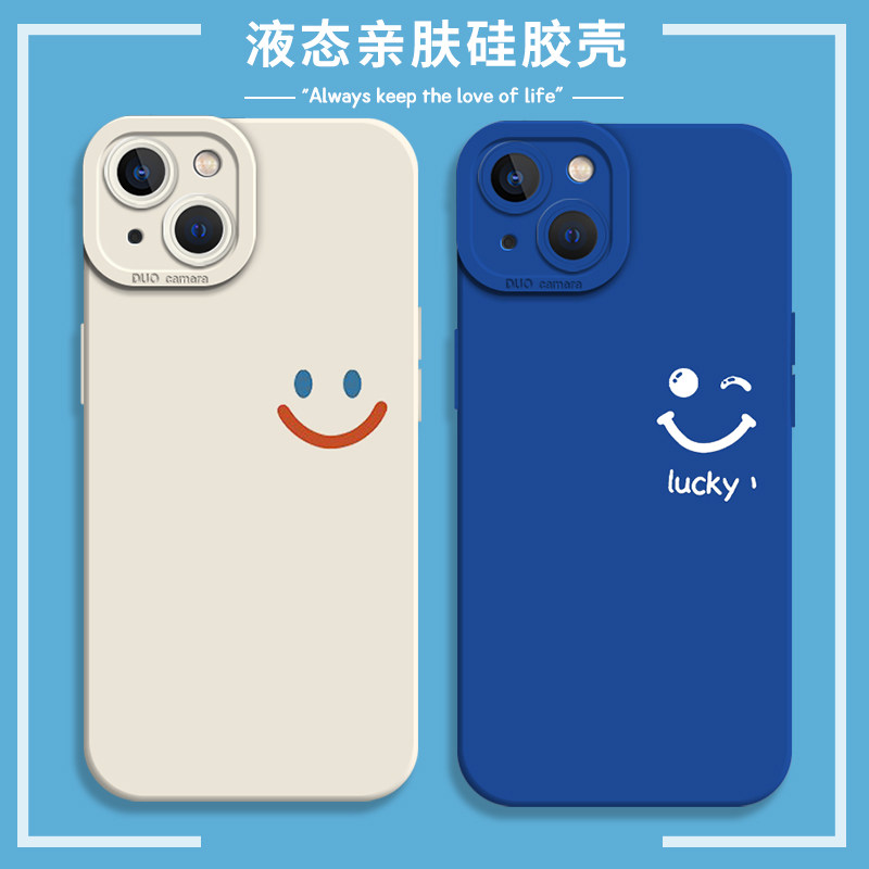 LUCKY简约文字笑脸手机壳适用iPhone15promax创意苹果11/12/13/14pro硅胶情侣软壳小米12/13/14pro全包保护壳