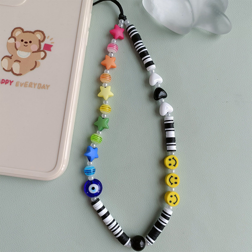 KKBEAD小众ins风挂饰软陶黄笑脸手机壳挂链件饰品爱心挂绳