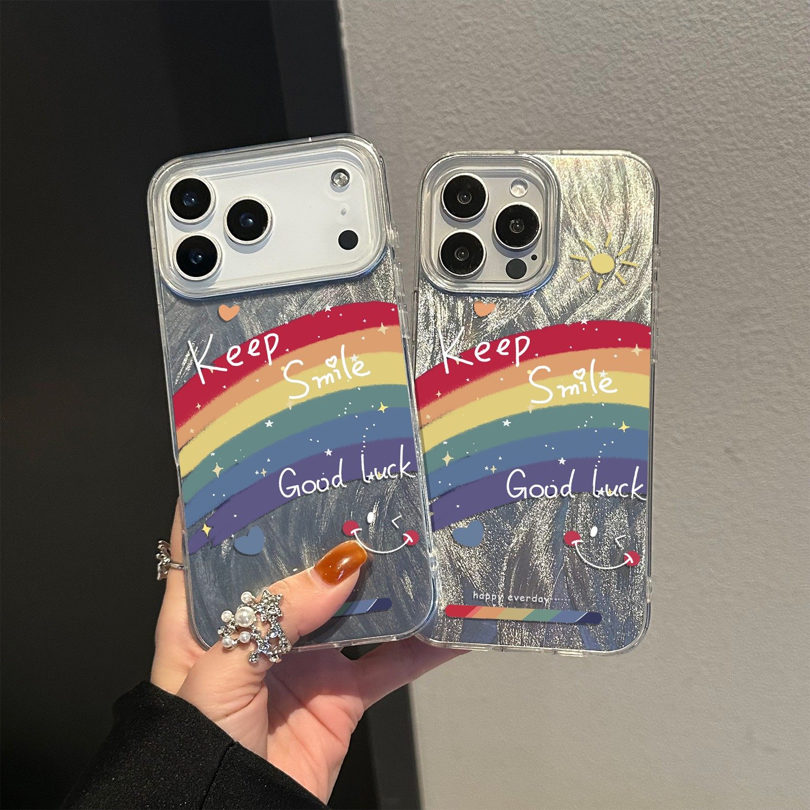 蓝爱心彩虹笑脸手机壳适用于苹果17pro/16 Pro/13/15/16Plus/14/12 Pro Max个性创意图案iPhone 14pro保护壳