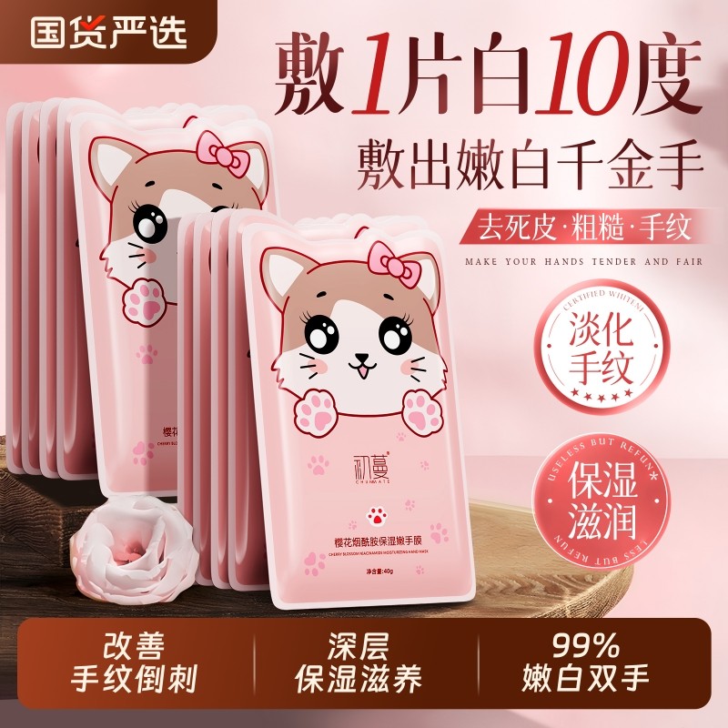 猫爪手膜嫩白保湿补水修复美白女手部干裂粗糙淡化手纹护理套脚膜