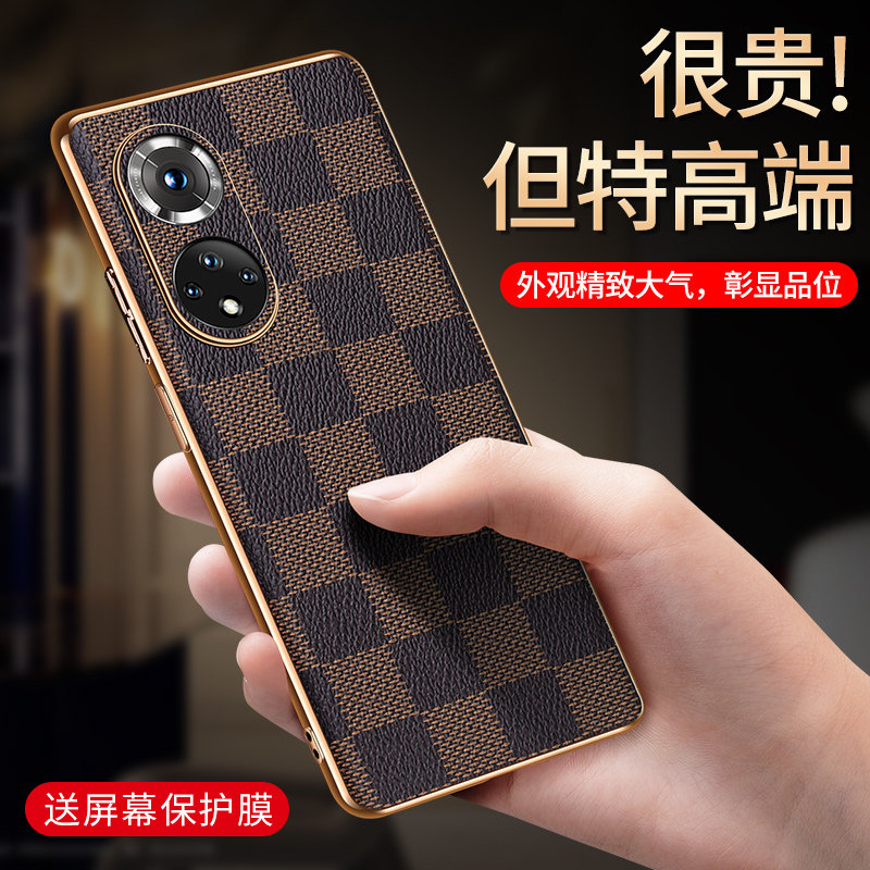 适用华为荣耀50手机壳磨砂高级感荣耀50Pro保护套新款素皮全包防摔荣耀50SE复古皮质轻奢时尚商务5G男士女