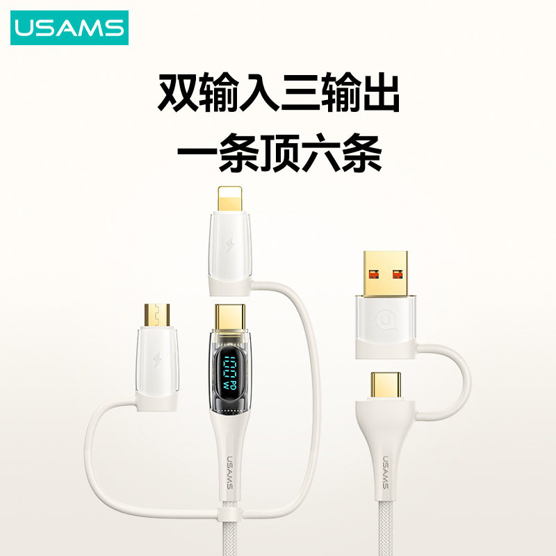优胜仕三合一数显数据线二拖三车载充电线器PD100W快充一拖三适用苹果15华为荣耀5A小米笔记本电iapd安卓手机
