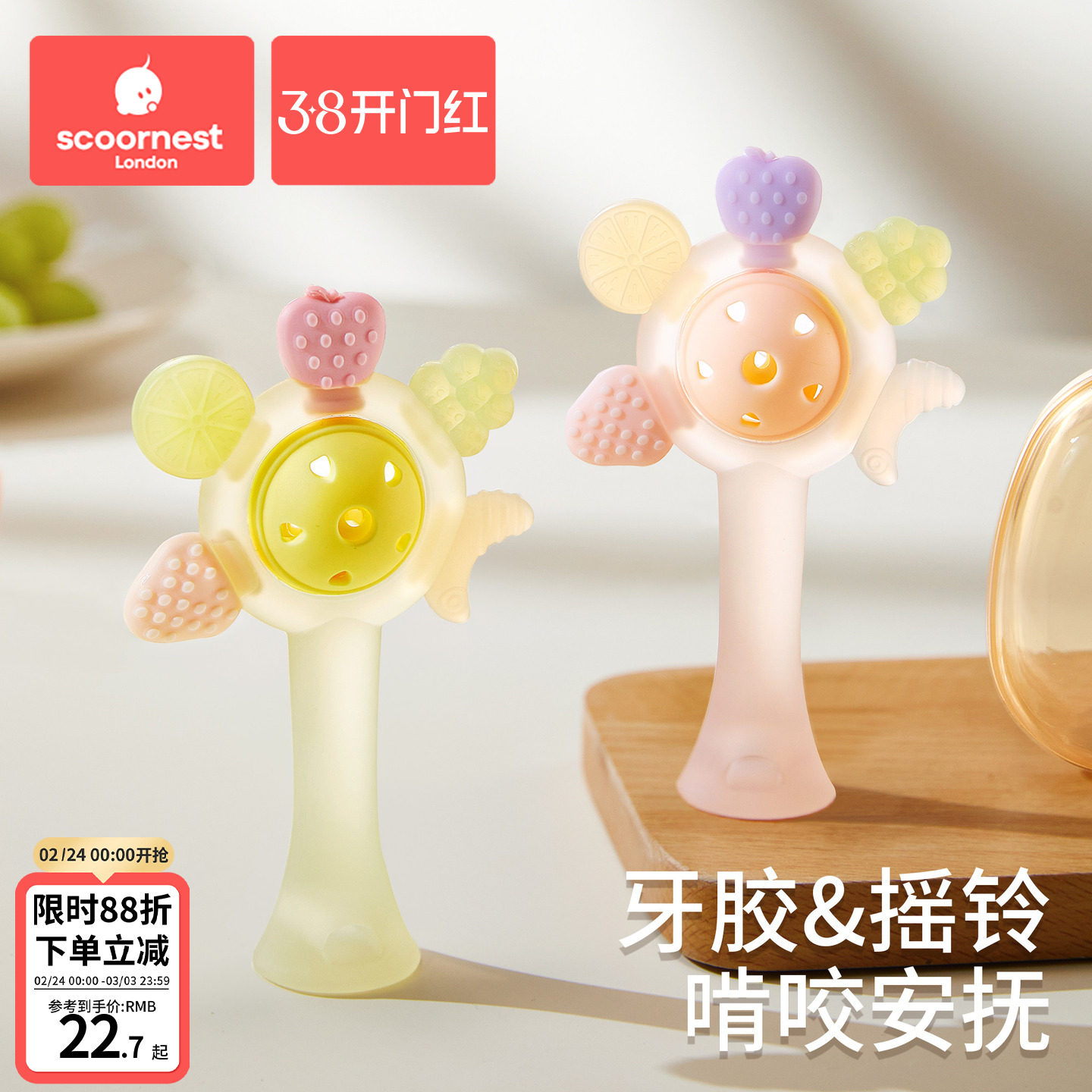 科巢手摇铃牙胶婴儿玩具0到6个月以上宝宝新生儿可啃咬小月龄抓握