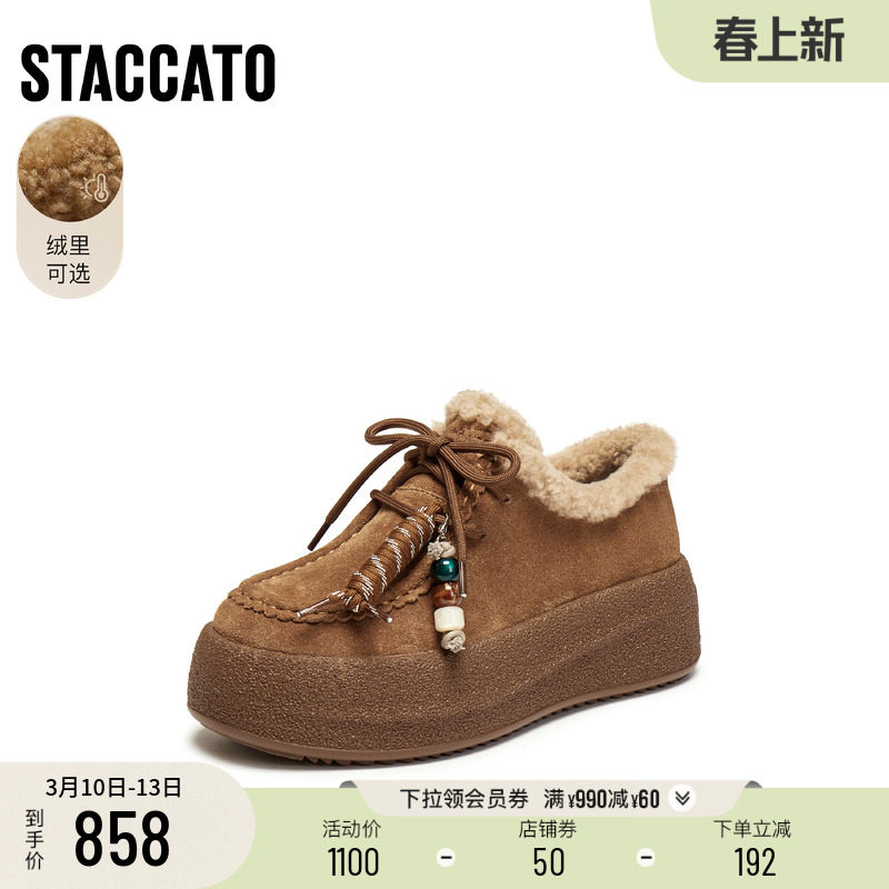 思加图新款复古运动休闲鞋厚底增高深口鞋加绒单鞋女鞋子J0261CM5