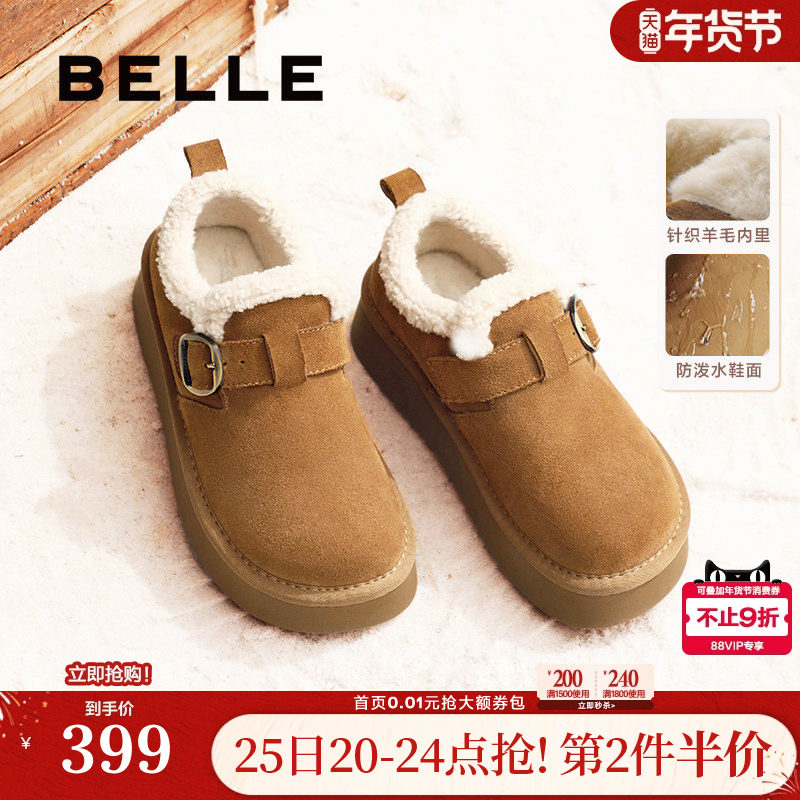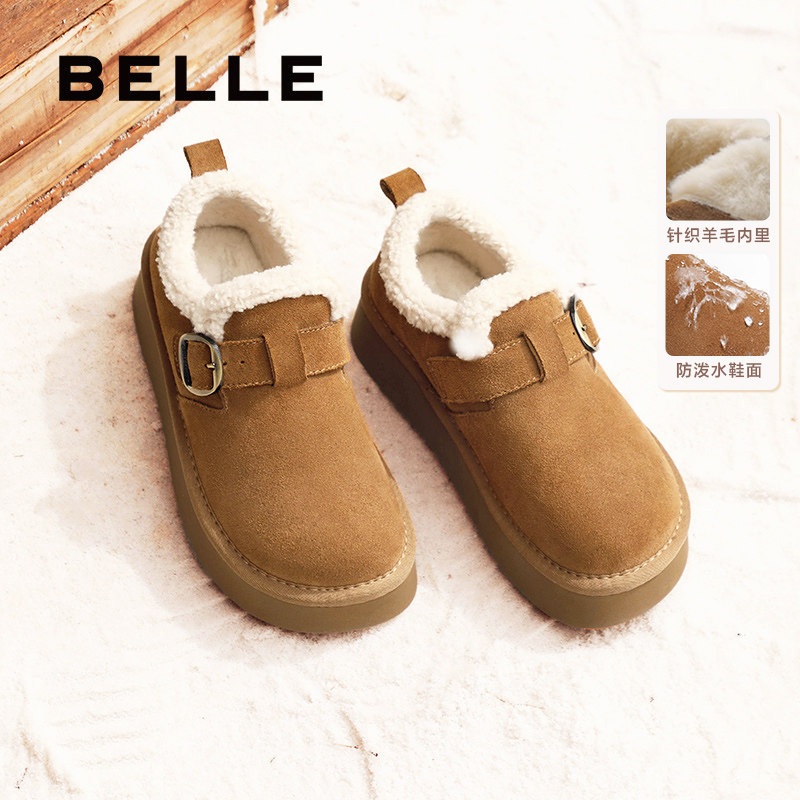 赵今麦同款百丽雪顶咖啡新款全包厚底勃肯毛毛棉鞋雪地靴加绒单鞋